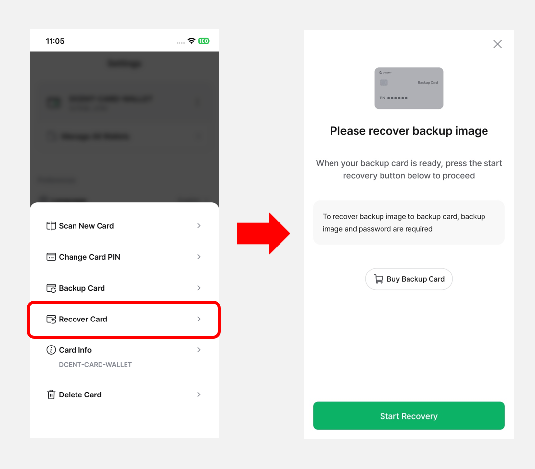 Click [**here**](https://userguide.dcentwallet.com/card-wallet/dcent-backup-card-wallet-recovery/step-3-recover-backup-image) for detailed instructions on how to recover your Card Wallet.