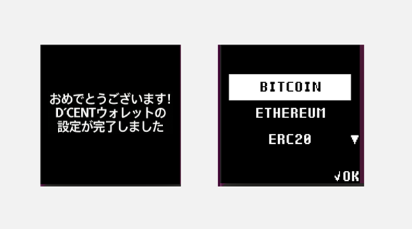 パスコードは本初期設定後に、**「**[<mark style="color:purple;">**設定**</mark>](https://userguide.dcentwallet.com/japanese/biometric-wallet/setting-menu)**」**&#x304B;ら変更することができます。
