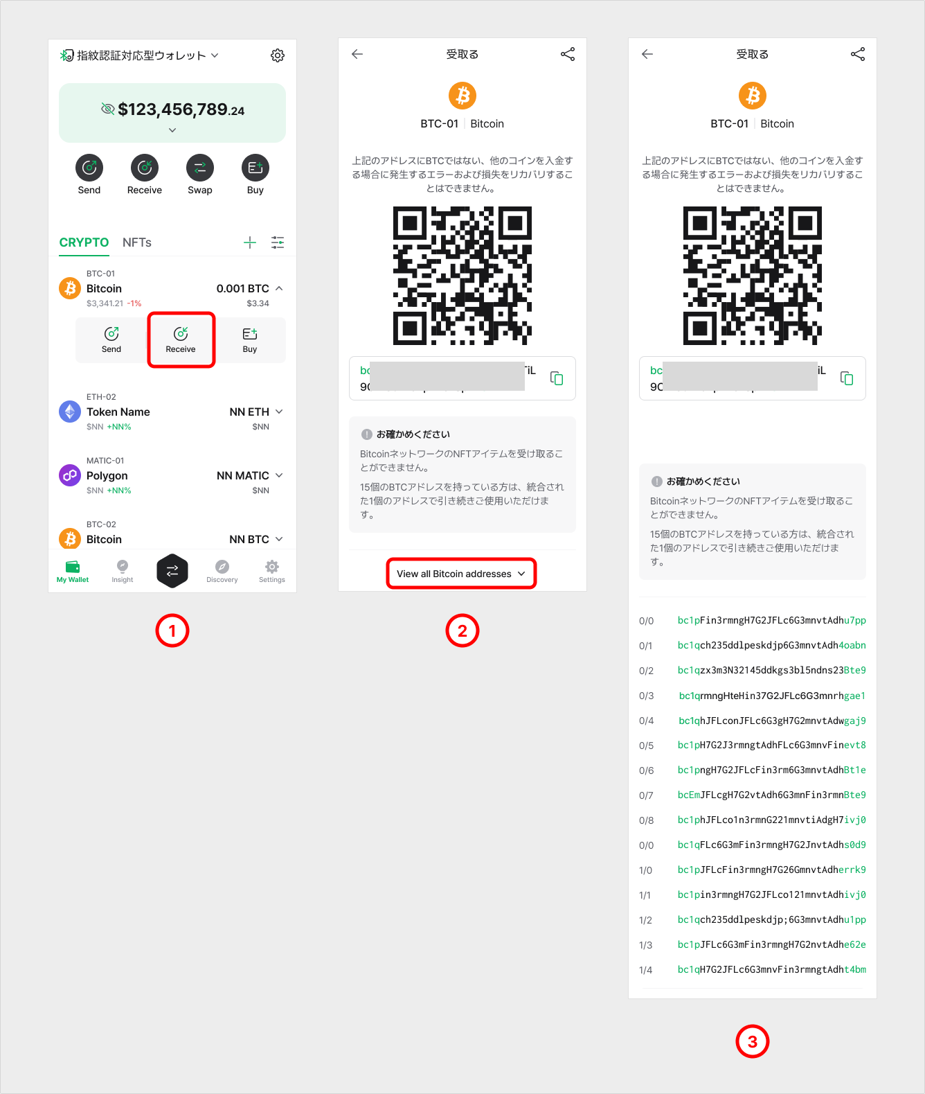 ### 🟨BTC系の全パブリックアドレスの確認方法